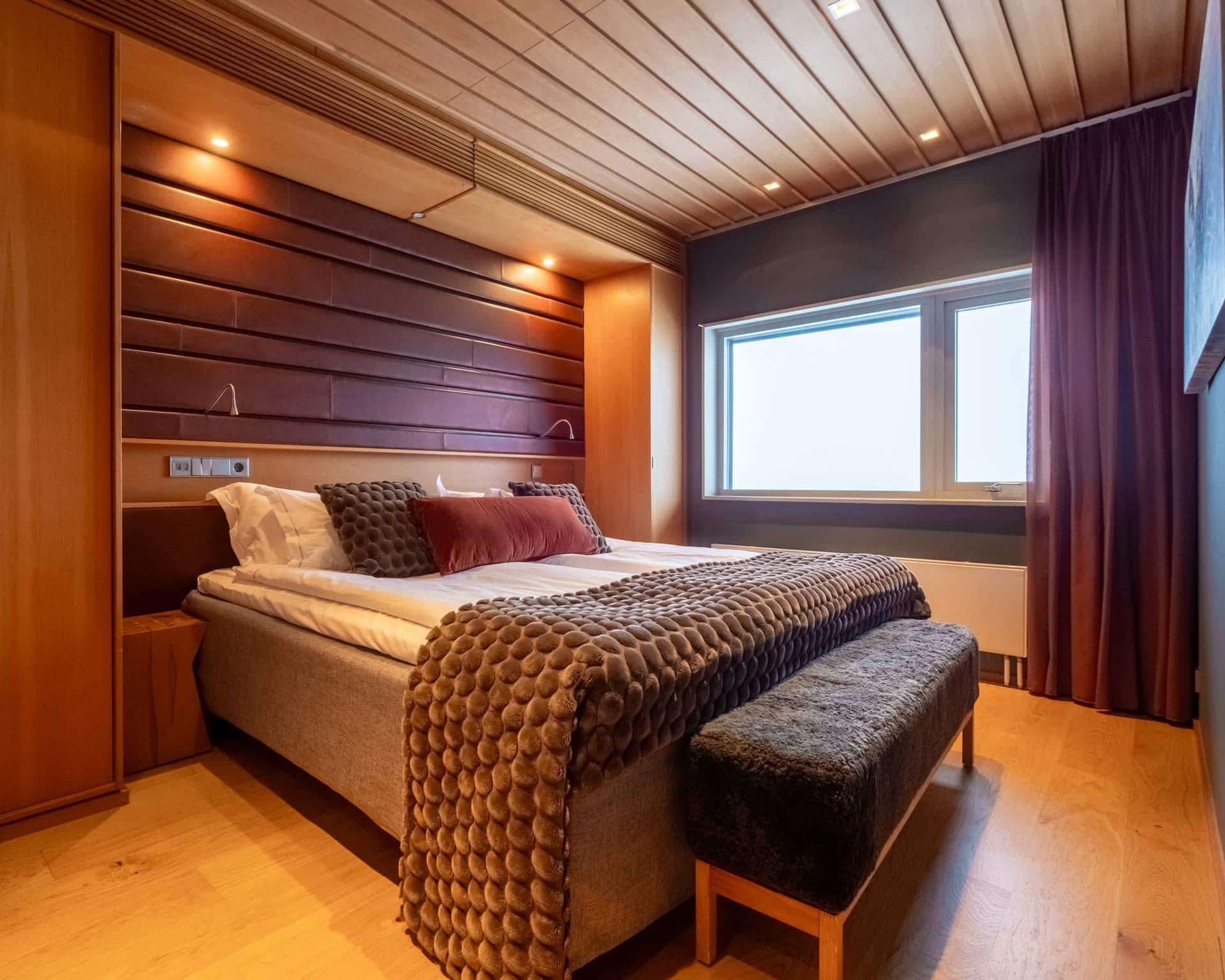 Ett större dubbelrum med det lilla extra och vacker utsikt mot skogen och fjällandskapet i norr.